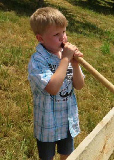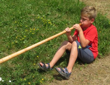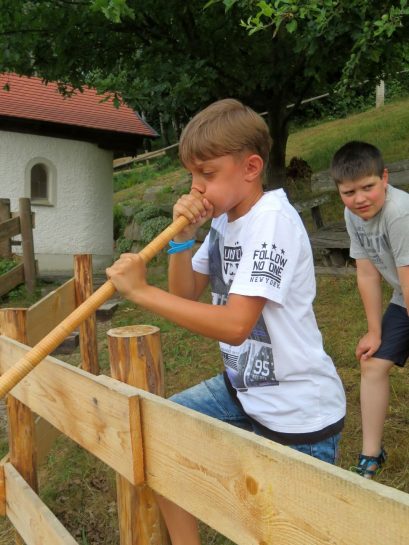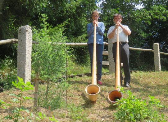 Musikalisch gestaltet wurde der Gottesdienst vom Blaibacher Dreigesang mit ihrer stimmungsvollen Waldlermesse. Dazu hatte ich die Ehre, zusammen mit meiner Mitspielerin Clara Sinell aus Berlin, den Jubiläumsgottesdienst mit kirchlichen Alphornklängen zu umrahmen. Nein, nicht nur im Alpenraum, auch in Norddeutschland hat sich in den letzten Jahren eine breite Alphorn-Szene entwickelt. Der stimmungsvolle Klang der Alphörner von der „Herz-Jesu“-Kapelle auf dem Ameisenberg, hinab ins „Tal“, zur Ameisenberg-Hütte, war für die Besucher der Jubiläumsfeier sicherlich ein besonderes Klangerlebnis.