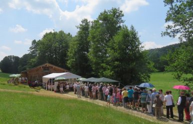 Nachdem die letzten Töne der Alphörner verklungen waren bedankte sich Pfarrer Karl-Heinz Seidl recht herzlich bei der Familie Rädlinger für die Errichtung der „Herz-Jesu“-Kapelle vor 10 Jahren und für die Organisation des Jubiläums-Patroziniums. Sein Dank galt auch Pfarrer Joseph Kata für sein Mitwirken, dem Mesner Thomas Bauer für die Unterstützung und den Musikern für die musikalische Umrahmung. Es war für Pfarrer Karl-Heinz Seidl der letzte Patronats-Gottesdienst auf dem Ameisenberg, da er noch in diesem Jahr sein neues Amt als Pfarrer der Stadt Furth i. Wald antreten wird.