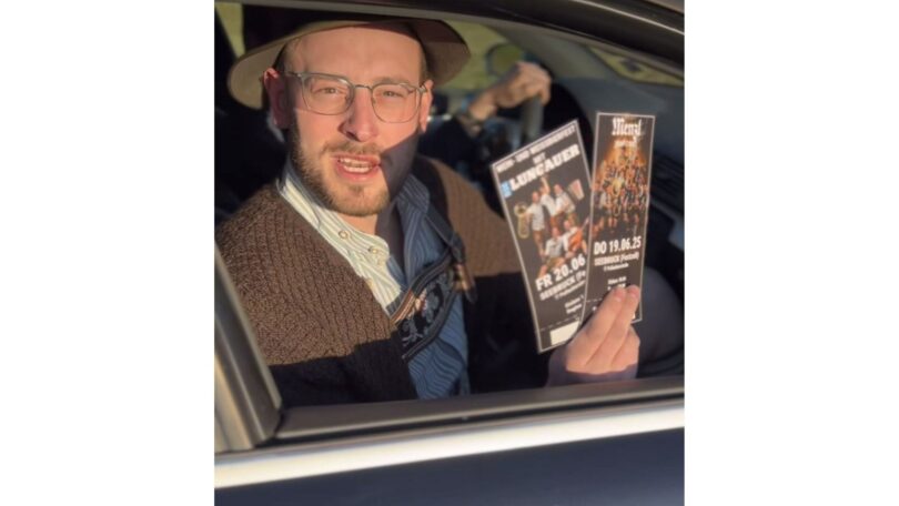 Text und Foto: Thomas Donhauser – Festausschuss-Mitglied Toni Heistracher präsentiert die beiden Tickets, die nun als Kombiticket erhältlich sind