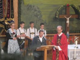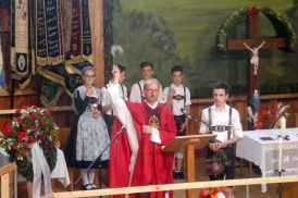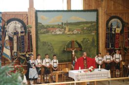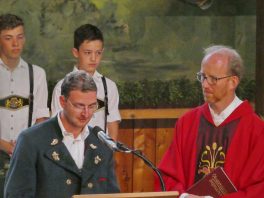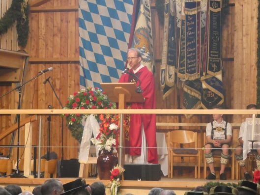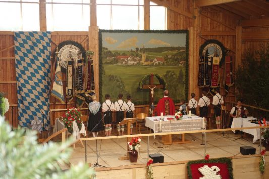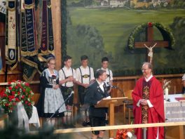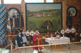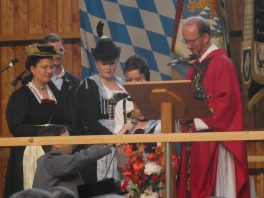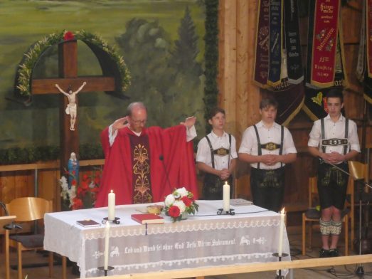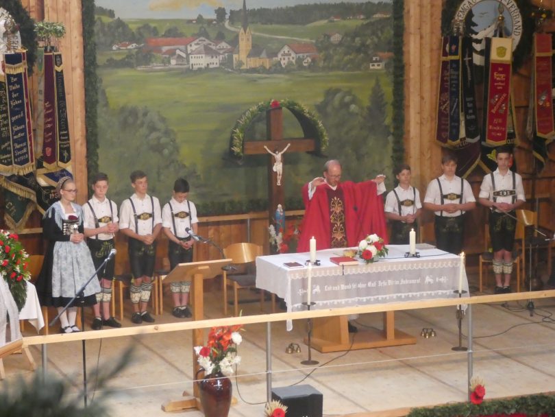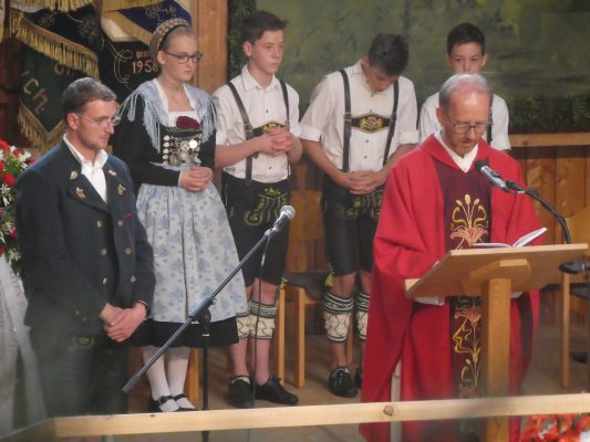 Zum 60. Geburtstag hatte sich der Trachtenverein “Ratzingerhöhe” Greimharting mit einem Gottesdienst am Pfingstsonntag vorbereitet, aufgrund der Witterung wurde dieser in der Festtalle gefeiert. Mit Priener Blasmusik und mit Stubenmusik sowie mit Pfarrer Klaus Hofstetter vom Pfarrverband Westliches Chiemseeufer waren beste Voraussetzungen für eine würidige, vom Trachtenverein liebevoll vorbereitete Feier zur Ehre Gottes gegeben. Pfarrer Hofstetter dankte in seinen Predigtworten dem Trachtenverein für den spür- und sichtbaren Teamgeist innerhalb des Trachtenvereins und inmitten der Dorfgemeinschaft. Viel Lob bekamen die Greimhartinger Trachtler auch von Gauvorstand Miche Huber vom Chiemgau-Alpenverband, von Schirmherr und Bürgermeister Josef Mayer von der Gemeinde Rimsting, von den Patenvereinen Rimsting und Griesstätt sowie vom Trachtenverein Heppenheim, der eigens aus Hessen für einige Tage zum Jubiläum nach Greimharting gekommen war.