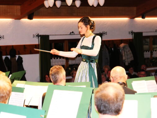 Ein Jubiläums- und Premieren-Konzert gleichermaßen war das traditionelle Herbstkonzert der Musikkapelle Wildenwart in der bis auf den letzten Platz besetzten Lamstoahalle von Frasdorf. Zum Abschluss des Festjahres „70 Jahre Musikkapelle Wildenwart“ dirigierte erstmals Johanna Rosenwink den großen Klangkörper nachdem sich Dirigent Sebastian Graf aufgrund von Hausbau um eine schöpferische Pause erbat. Lange anhaltender Beifall am Ende würdigte Mut, Leistungen und Vorbereitungen von Johanna Rosenwink sowie von allen Musikantinnen und Musikanten, die sich für ein unterhaltsames und anspruchsvolles Programm entschieden hatten.