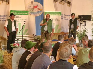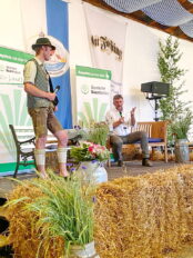 Foto 1: Sepp Hofmeyer moderiert die Diskussion mit BBV Präsident Günther Felßner