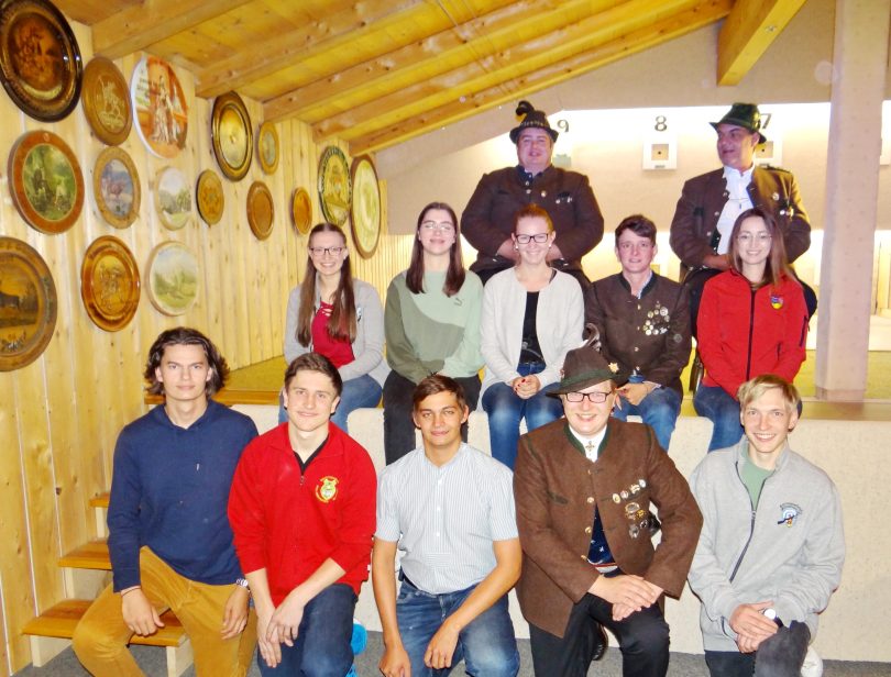 Bericht und Foto: Sebastian Hering – vorn von Links: Sebastian Baumann, Florian Summerer, Seppi Brehmer, Klaus Kollmannsberger, Xaver Gelder – Mitte von links: Rosa Gelder, Lorena Fischer, Regina Hekele, Franzi, Oben von links: 2. Gauschützenmeister (GSM) Uwe Kueres und 1. GSM Bernhard Brehmer