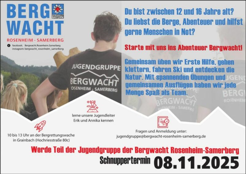 Anmeldung & Fragen: jugendgruppe@bergwacht-rosenheim-samerberg.de