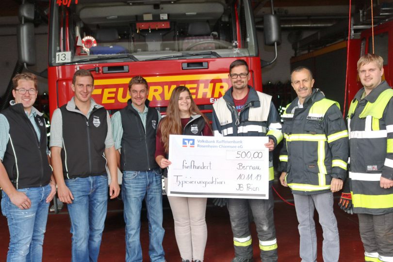 Am kommenden Sonntag, 10. November findet die Typisierungsaktion der Feuerwehr Bernau für deren Mitglied Maxi statt. Auch einige Mitglieder der Jungbauernschaft aus Prien werden sich daran beteiligen und als Spender typisieren lassen. Da durch jede Registrierung Kosten für die DKMS entstehen, hat sich der Verein dazu entschlossen, die Aktion finanziell mit einer Spende von 500 Euro zu unterstützen. Dafür überreichte die Vorstandschaft der Jungbauern an den stellvertretenden Kommandanten Florian Praßberger, Schirmherrn und Kreisbrandrat Richard Schrank und Vorstand Andreas Reiter einen symbolischen Scheck. “Wir finden die Aktion super, daher unterstützen wir diese auch und hoffen, dass viele neue Spender gefunden werden”, so 1. Vorstand Florian Fischer.