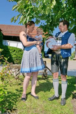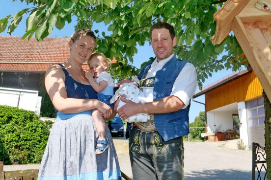 Unsere Bilder zeigen u.a. am neuen Kreuz von links: Christiane und Ludwig Strohmayer mit den Kindern Magdalena und den am 1. August zur Welt gekommenen Stammhalter Ludwig sowie Paul Panzer und Jakob Bartl.