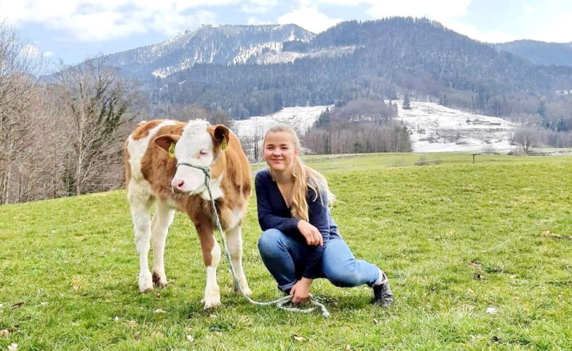 Fotos: Maria Griebl vom Samerberg versteht sich mit Jungvieh und Kühen gleichermaßen – was das Ziel der Jungzüchter in der VZG Rosenheim ist