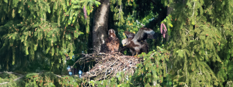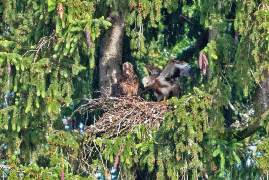 Es ist nun schon das dritte Jahr, in dem im Horst hinter meinem Haus erfolgreich Rotmilane geschlüpft sind.