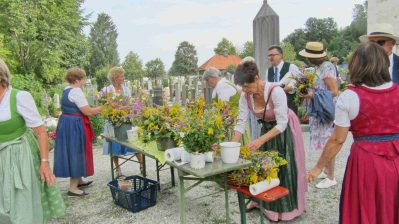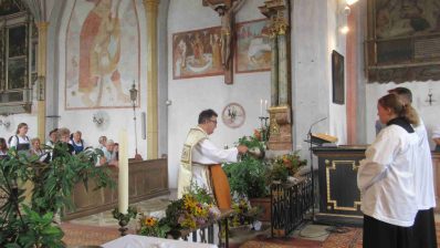 Gerne angenommen wurde auch heuer wieder das Angebot der KAB, die von Mitgliedern des Vereins gebunden Kräuterbuschen zu erwerben und beim Gottesdienstdiens – heuer in der Kirche von Altenbeuern – segnen zu lassen. Weit über 100 Buschen wurden gefertigt, diesmal auch unter der Mithilfe von Flüchtlingen aus der Ukraine, welche in Neubeuern Aufnahme fanden. Die Segnung am “Frauentag” vollzog Pfarrer Christolph Rudolph, verbunden mit den Worten der Schrift, dem Hoffen auf Beendigung des Krieges und der Verfolgung sowie der Bitte um gedeihliches Wetter und einer gute Ernte. Die gegebenen Spenden für die Kräuterbuschen in Höhe von 535.-€, sowie die Kollekte aus der Jahresmesse von 2o5.-€ konnten an dem Asylhelferkreis Neubeuern gegeben werden.
