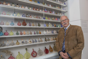 Sammler Heiner Schaefer vor Bixl-Vitrine