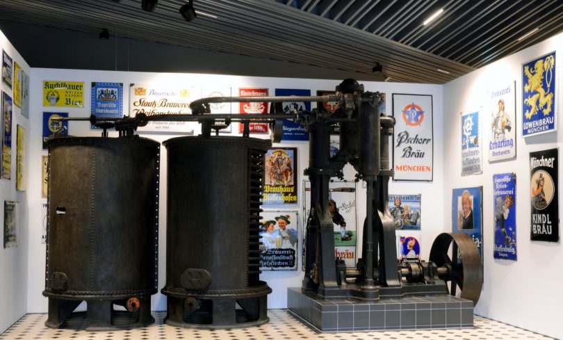 Die Dauerausstellung im Museum des Hauses der Bayerischen Geschichte wird aufgebaut. Auf der Bühne „Bayern industrialisiert mit Maß“ steht die Kältemaschine von Carl Linde für technische Innovationen im Bayern des ausgehenden 19. Jahrhunderts und den Siegeszug des bayerischen Biers, umrahmt von zahlreichen Emaille-Werbeschildern, die das Bild Bayerns in der Welt über die Bierwerbung nachhaltig prägten. Hightech und Werbung zusammen waren grundlegend für den Mythos Bayern. Ab 5. Juni können Besucherinnen und Besucher die fast sechs Tonnen schwere Maschine im Museum sehen.