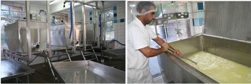 Die von den Bauern persönlich abgelieferte Milch wird nach einer gewissenhaften Eingangskontrolle in Käsewannen schonend pasteurisiert. Unsere Milch wird nicht wie in der Industrie üblich in ihre Bestandteile zerlegt oder homogenisiert. Die einzige mechanische Belastung ist ein langsam, laufender Rührflügel, der das Aufrahmen verhindert. Die Milch wird nicht teilentrahmt, sondern bleibt in ihrem Fettgehalt Naturbelassen, das heißt, aus unserer Schaf- Ziegen- und Kuhmilch wird ein hervorragender Käse mit phantastischem Aroma hergestellt. Durch unsere Verarbeitungsweise werden Milcheiweiß und Fettmoleküle geschont; wir erhalten dadurch die natürliche Qualität eines der vollwertigsten Lebensmittel.