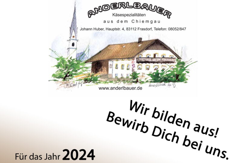 Für das Jahr 2024 sucht der regionale Käsespezialist Anderlbauer von Frasdorf einen zuverlässigen und engagierten Auszubildenden als Bürokaufmann /-frau.