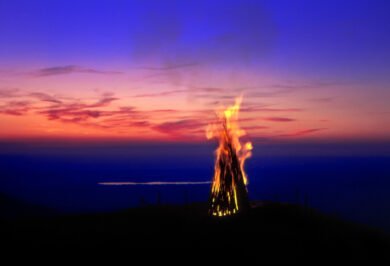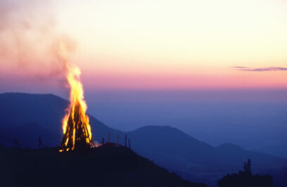 In jahrzehntelanger Tradition wird auf der Kampenwand der längste Tag des Jahres gebührend gefeiert. Dieser Tag lädt dazu ein, schon am späten Nachmittag hoch zur SonnenAlm zu kommen, um den Ausblick und die Abendsonne zu genießen. Für das leibliche Wohl sorgen an diesem Tag die SonnenAlm selbst sowie verschiedene Essensstände wie beispielsweise ein Griller und ein Crêpe-Stand. Wenn die Sonne dann langsam unter geht, spielt eine zünftige Musik an der SonnenAlm auf und alle bereiten sich auf das Highlight des Abends vor, denn zum Einbruch der Dunkelheit wird nahe der Bergstation, musikalisch umrahmt von den Aschauer Alphornbläsern, ein großes Sonnwendfeuer entzündet; mit traumhaftem Blick auf das Voralpenland sowie das funkelnde Priental und die Feuerkette der leuchtenden Sonnwendfeuer in den österreichischen Bergen. Anschließend kann je nach Lust und Laune die besondere Atmosphäre des Abends in aller Ruhe weiter am Feuer genossen werden. Die Seilbahn fährt den ganzen Tag bis Mitternacht. Tischreservierungen in der SonnenAlm können an diesem Abend nicht entgegengenommen werden, die SonnenAlm bietet jedoch vorab einige Plätze mit Blick auf das Feuer zur Buchung im Online Shop an. Bitte nehmen Sie warme Kleidung für den Abend mit, auch eine Unterlage zum Sitzen in der Wiese ist eine gute Idee. Wenn Sie zu Fuß wandern möchten, denken Sie bitte an gute Schuhe und gegebenenfalls ein Licht für die Nachtwanderung zu Tal.