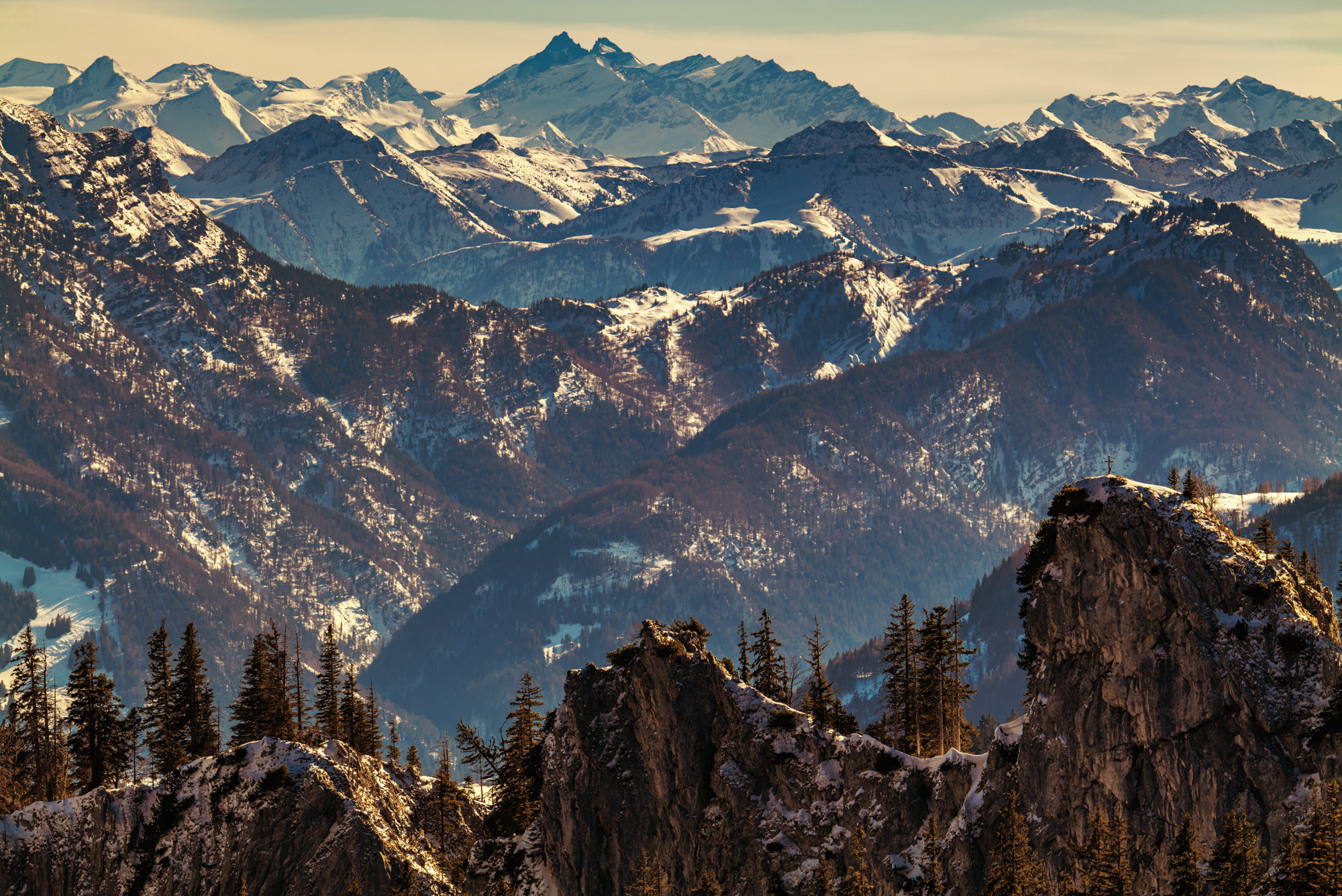 Rund um die Sonnenalm: atemberaubende Ausblicke auf die schneebedeckten Bergriesen der Zentralalpen.