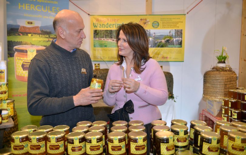 Bayern präsentiert sich auf der Internationalen Grünen Woche in Berlin selbstbewusst als Heimat einzigartiger Spezialitäten und als gastfreundliche Urlaubsregion. In der eigenen Bayernhalle auf der weltgrößten Ernährungsmesse sind rund 40 verschiedene Hersteller von Spezialitäten mit dabei. Hier können Besucher zehn Tage lang entdecken und probieren, welche kulinarischen Genüsse Bayern zu bieten hat. Auch die Allgäuer Wanderimkerei aus Maierhöfen im Landkreis Lindau ist in der beliebten Bayernhalle auf der Grünen Woche vertreten. Landwirtschaftsministerin Michaela Kaniber schaute bei ihrem Messerundgang am Stand des Imker-Meisters Rainer Krüger vorbei und probierte die Spezialität „Hercules-Bienenpower“.