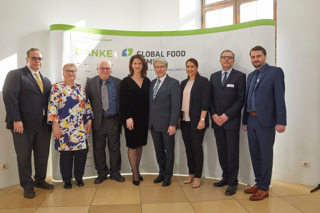 Foto StMELF: Staatsministerin Michaela Kaniber (4.v.l.) mit (v.l.n.r.) Maximo Torero, stellv. Generaldirektor FAO und den Kuratoriumsmitglieder des World Food Summit Martina Schraudner, David Zilberrman, Stephan Becker-Sonnenschein, der Ministerin für Ernährungssicherheit der Vereinigten Arabischen Emirate Maryam Al Mehairi, sowie Justus Wesseler und Simon Reitmeier