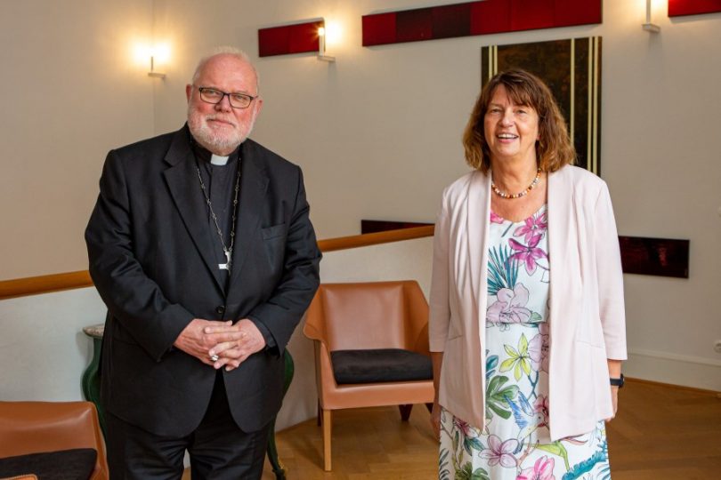 Bildunterschrift: Kardinal Reinhard Marx hat die Präsidentin der Katholischen Universität Ingolstadt-Eichstätt, Gabriele Gien, in seinem Dienstsitz empfangen und ihr zur Wiederwahl im Amt gratuliert.