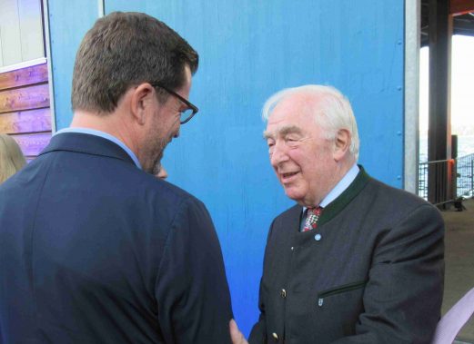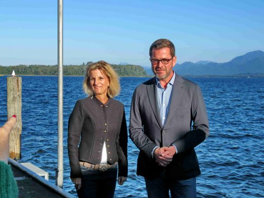 Interessanter Besuch in Prien a. Chiemsee: auf Einladung der Bundestagsabgeordneten Daniela Ludwig war Karl-Theodor zu Guttenberg in der Schiffshalle der Chiemsee-Schifffahrt zu Gast. Dabei ging es trotz Wahlkampfzeiten nicht in erster Linie um Politik. Vielmehr war es eine Gelegenheit, sich nach zehn Jahren wiederzusehen, denn Daniela Ludwig und Karl-Theodor zu Guttenberg kamen 2002 gleichzeitig in den Bundestag, Guttenberg war einige Jahre Wirtschafts- und dann Verteidigungs-Minister und ging dann für nicht-politische Tätigkeiten nach Amerika. Nun ist er wieder in Deutschland zurück und freute sich, in seiner ursprünglichen Heimat wieder auf “alte” Freunde zu treffen. Beim recht ausführlichen und sehr privaten Dialog ging es nur am Rande um Politik, unter anderem sagte Guttenberg: “Auch Politiker sind Wesen mit Gefühlen, das Berliner Umfeld ist kein Ponyhof”.