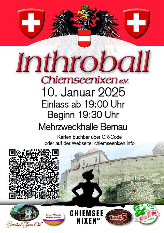 Die Gemeinde Bernau informiert: Jetzt noch eine der wenigen Restkarten für unseren Inthroball in der Mehrzweckhalle Bernau buchen, über unsere Webseite: www.chiemseenixen.info