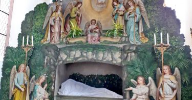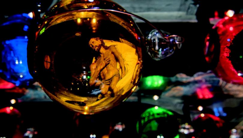 Viele Details gibt es derzeit beim Aschauer Hl. Grab in der Kath. Pfarrkirche „Darstellung des Herrn“ zu entdecken. Dabei entstand eine faszinierende Fotoaufnahme: In einer der 140 bunten Grabkugeln spiegelt sich der Leichnam Jesu wider. Ab der Karfreitagsliturgie um 15 Uhr wird diese Szene der Grablegung sichtbar sein und auch noch am Karsamstag dazu anregen, das Mysterium der Passion Jesu in einem anderen Licht sehen. Wenn dann während dem „Gloria“ in der Osternachtfeier (Sonntag  5 Uhr) der Auferstandene unter Glockengeläut und Trompetenschall in die Höhe gezogen wird, wandelt sich das Hl. Grab zum Medium österlicher Freude – und bleibt so bis 5. Mai sichtbar. Weitere Infos zu Öffnungszeiten und Festgottesdiensten gibt es unter www.pfarrei-aschau.de.