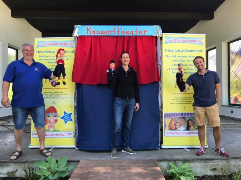 Weitere OpenAir-Vorstellungen des Chiemsee Kasperltheaters mit Ausnahmegenehmigung des Landratsamtes gibt es am kommenden Freitag, 5. Juni (15 Uhr) im Kurpark Bad Aibling, am Samstag, 6. Juni beim Regerl Hof in Prien-Ernsdorf (15 Uhr + Zusatzvorstellung um 16 Uhr), sowie am Samstag, 11. Juni (15 Uhr) im Kurpark Aschau. Es sind jeweils maximal 50 Zuschauer erlaubt, deshalb werden die Besucher gebeten, sich die Karten im Vorverkauf unter www.chiemsee-kasperl.de zu reservieren.