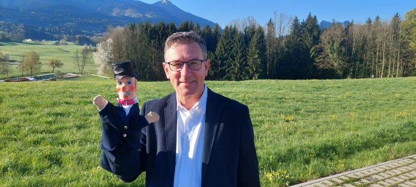Aus der Politik zum Kasperltheater: Samerbergs Bürgermeister Georg Huber spielt sich selbst bei “Kasperl & der entführte Bürgermeister”.
