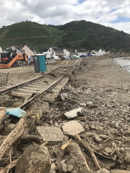 Neuer Aufgabenschwerpunkt heute ist das Freilegen und Öffnen von Heizöltanks in Kellern, um ein Gemisch aus Öl und Wasser mit Spezialgeräten abpumpen zu können. In großflächig auf den Straßen rund um die Gemeinde Dernau im Landkreis Ahrweiler installierten Tanks können die Flüssigkeiten danach grob voneinander getrennt werden. Abschließend erfolgt die fachgerechte Entsorgung des Öls und das vorgereinigte Wasser wird zur Wiederaufbereitung in eine Kläranlage transportiert.