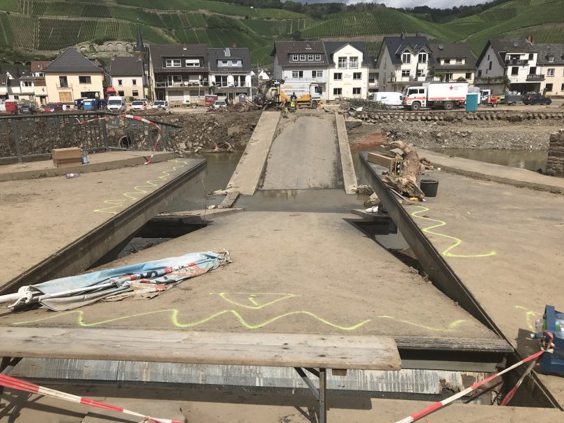 „Diese Arbeiten werden sicherlich noch mehrere Wochen lang andauern. Ein neues Hilfeleistungskontingent aus Bayern bringt hierfür zusätzliche Ölwehrgeräte mit in die Region“, erläutert Kreisbrandrat Richard Schrank. Alle menschlichen Schicksale und Tragödien, die in den Dörfern ständig präsent seien, bewegten das gesamte Helferteam sehr. Am gestrigen Abend habe man daher auf Anfrage in einem Ort extra einen kleinen Platz freigeräumt und freigespritzt, damit sich Anwohner*innen zu einem gemeinsamen Schweigemoment und einem kurzen Abendessen treffen konnten. „Wir spüren eine große Dankbarkeit der Menschen, die im Rahmen unserer Hilfe wieder ein Stück Halt und Sicherheit finden.“