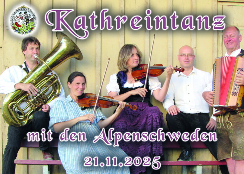 Der Trachtenverein Gröbenzell lädt am 21.11.2024 um 20 Uhr (Einlass ab 19 Uhr) zum Kathreintanz ein. Zu diesem traditionellen Abschluss der Tanzsaison spielt uns die beliebte Tegernseer Tanzlmusi auf. Bei Walzer, Polka, Dreher, Zwiefachem und anderen bayrischen Volkstänzen wird das Tanzbein geschwungen und des wird a Mordsgaudi.