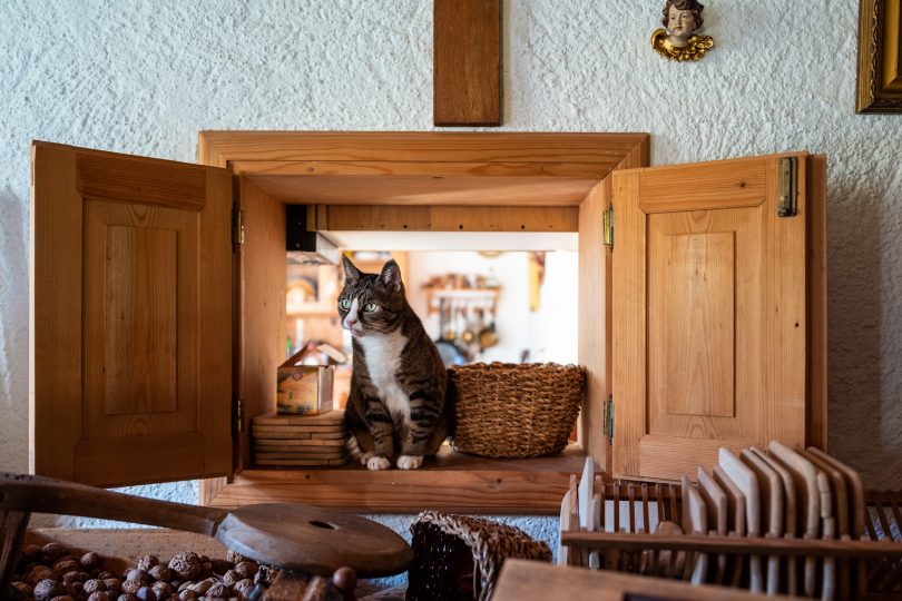 Wohl dem, der einen guten Heimplatz hat – dies gilt vor allem für Haustiere und Katzen. Wenn sie dann, wie im Bauernhaus der Familie Berger in Seebach in der Gemeinde Oberaudorf auch noch einen aussichtsreichen Platz zwischen Küche und Stube bekommen, dann ist die Welt bestimmt in Ordnung. Für das perfekte Tierwohl sorgt dann Hausherr Hans Berger, wenn er zum Feierabend auf seiner Zither spielt, da lauscht die Katze mit sichtbarem Interesse.
