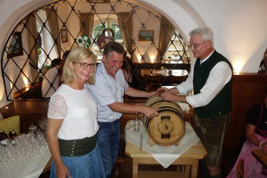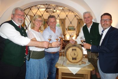 Eine einjährige Einlagerungszeit eines 50-Liter Fasses mit Zwetschgenbrand beim Klosterwirt auf der Fraueninsel ist zu Ende. Die Fass-Präsenz auf Frauenwörth war Teil einer besonderen Aktion der Bayerischen Edelbrandsommeliers, deren Fass-Rückholung auf das Festland festlich und sogar in Begleitung der Bayerischen Staatsministerin für Umweltschutz und Verbraucherschutz Ulrike Scharf erfolgte.