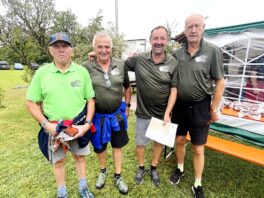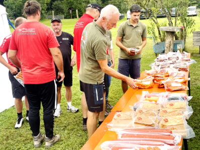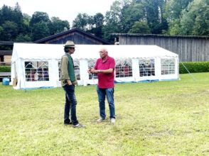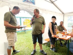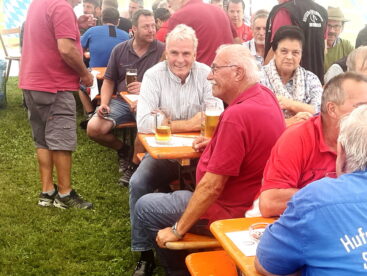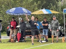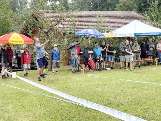 Hufeisenvorstand Josef Freund freute sich bei seiner Begrüßung, dass trotz unsicherer Wetterlage so großer Zuspruch seitens der Leute mit dem Glücksbringer-Eisen herrschte. Sein besonderer Dank galt den vielen ehrenamtlichen Helfern des Hufeisenvereins, der Bauersfamilie Steindlmüller für die stete Platzpflege und für die Gewährung der Parkplätze, Vereinsmitglied Richard Grosse für die Grillwaren sowie Aussendienstbetreuer Rudi Lutz vom Hofbräuhaus Traunstein für die Getränke-Lieferung. Ein besonderer Willkommensgruß galt Baron Ludwig von Cramer-Klett. Als dieser vom Hufeisenwettbewerb hörte, wollte er sich ein Bild von der ihm bislang unbekannten Sportart machen. Ehrenvorsitzender Peter Freund erläuterte dem Baron die Turnier-Gepflogenheiten ehe dann Manfred Zott für den Hufeisenverein die Siegerehrung vornahm. Für jeden Teilnehmer gab es zum Dank für das Mitmachen und auch für das Duchhalten trotz kurzzeitiger Regenschauer Wurst- und Fleischpreise zur Auswahl. Folgende Ergebnisse konnten bekanntgegeben werden: Gruppe A: Kelchsau Erharter vor Kaltenbach I, HC Morast, Tüssling, Söchtenau II, Grüntal, Niederndorfer Berg, Eggstätt und Bad Aibling. Gruppe B: Kelchsau Riedmann vor Kirchdorf, Kössen, Erl-Bubenau, Schnaitsee, Söchtenau I, Kolbing, Nussdorf und Kaltenbach II. Für die musikalische Gestaltung der Siegesfeier sorgte Ziachspieler Paul Bertl aus Bergen. Auch in den kommenden Wochen werden diesseits und jenseits der bayerisch-tirolerischen Grenze wieder Freundschaftsturniere durchgeführt.
