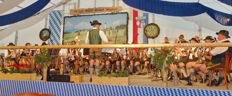 Die Musikkapelle Stephanskirchen spielte zum Kesselfleischessen beim Trachtenverein “Edelweiß” Höhenmoos im gut besetzten Festzelt auf. Dies war nach anstrengenden Tagen des Feierns und des Bauernhofbrandes eine gute Gelegenheit, das 110jährige Vereinsjubiläum etwas gemütlicher anzugehen ehe es mit weiteren Veranstaltungen weitergeht. So feiert am Mittwoch, 24. Mai die Landjugend eine Party, am Donnerstag ist großer Familientag der Feuerwehr bereits ab 11 Uhr, am Samstag ist Gemeinschaftskonzert von der Blaskapelle Rohrdorf mit den Gastskapellen aus drei Partnergemeinden und am Sonntag, 28. Mai beginnt um 10 Uhr mit einem Sternmarsch der “Tag der Blasmusik”.