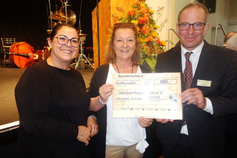 Aen der Jakobus Hospizverein e.V. für Stadt und Landkreis Rosenheim seinen 30. Geburtstag im Ballhaus von Rosenheim feiern konnte (bzw. gefeiert wurde) – da war es dem Alten- und Pflegeheim von Kiefersfelden ein willkommener Anlass zum Danke-Sagen und zu einer Spende aufgrund des guten und gemeinsamen Zusammenwirkens.