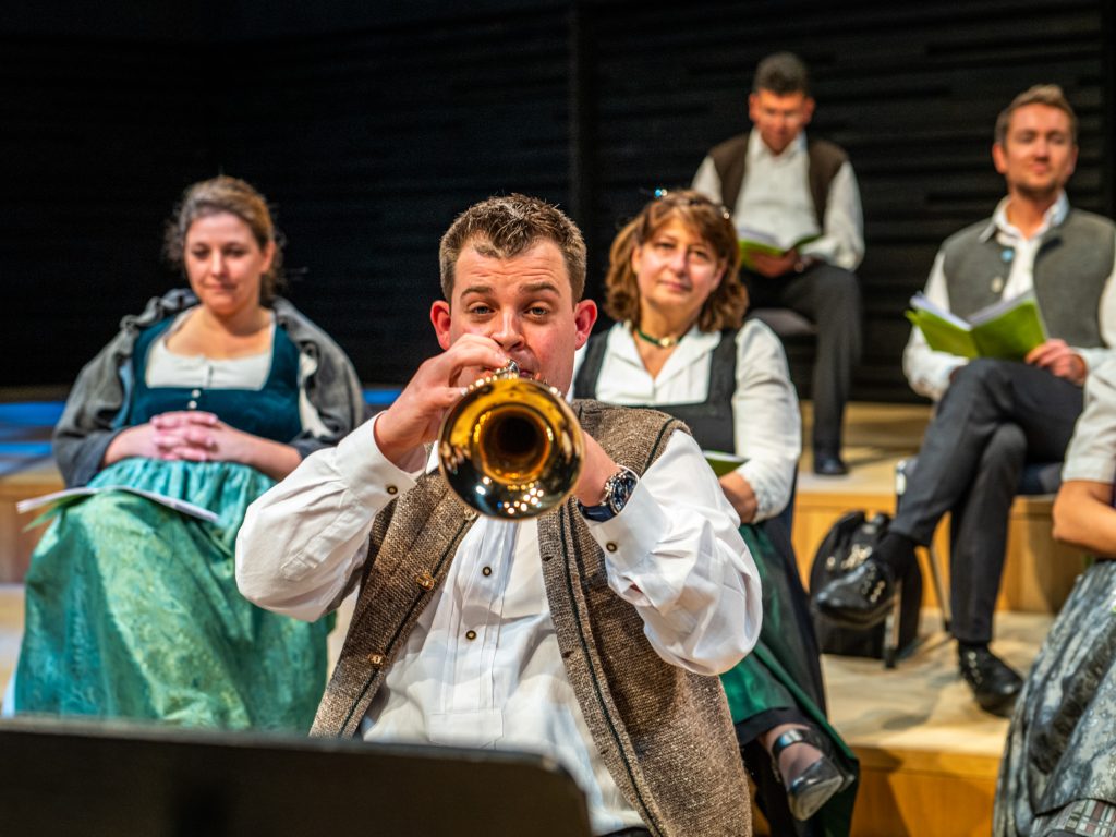 Hans Berger’s Adventssingen mussten im vergangenen Jahr aufgrund der Pandemie pausieren. Umso erfreulicher war es, dass das beliebte Konzertereignis in diesem Jahr in der Isarphilharmonie, wenn auch unter strengen Corona-Auflagen, stattfinden konnte. Am Samstag nahm der kleine Montini-Chor – die bayerisch-tirolerische Chorgemeinschaft – mit seinen Dreigesängen, Sprecher (Marin Urscher), Josef (Sepp Staber), Maria (Johanna Jackl), Engel (Theresa Förg), der Handwerksbursch Hansei (Daniel Hinterberger), Wirt (Horst Kirner) und dem Ensemble Hans Berger unter dem Motto „Kimmt die Heilige Nacht“ das Publikum wieder auf eine stimmungsvolle Reise mit. Anlässlich des 100. Todestages von Ludwig Thoma hat Hans Berger die wohl schönste bayerische Weihnachtslegende „Die Heilige Nacht“ konzeptionell in den Ablauf seines Adventssingens eingeflochten.