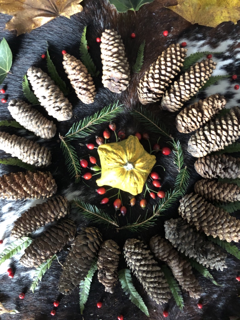 Bericht und Foto: Mandala aus Naturmaterialien © Bezirk Oberbayern, Archiv Bauernhausmuseum Amerang