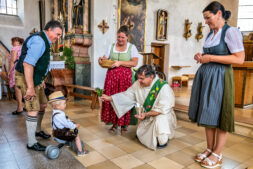 Jedes Kind erhielt ein persönliches Segenswort, Weihwasser und einen Christopherus-Aufkleber. Die musikalische Gestaltung übernahm der Kinderchor unter der Leitung von Franziska Daxer und Vevi Schwarz, am Keybord wurden diese begleitet von Organist Jürgen Gieck. Im Rahmen des Gottesdienstes wurde Maria Magdalena Stuffer aus Kohlgrub getauft (Eltern Johannes und Raphaela Stuffer, Bruder Vitus). „Die anwesenden Kinder erlebten auf diese Weise, wie es bei ihrer eigenen Taufe einmal war“, so Diakon Schmitzberger, der noch ganz besonders Maria Höhensteiger und ihrem Team dafür dankte, dass sich auf dem Samerberg so stark für das umweltfreundliche Stadtradeln bemühten und sagte dazu: „Gerade der Umweltgedanke im Straßenverkehr hat etwas mit dem Erhalt der Schöpfung zu tun“. Nach dem Familien-Gottesdienst wurde noch gerne das Dorffest der Gebirgsschützen und des WSV Samerberg auf dem Törwanger Dorfplatz angenommen.