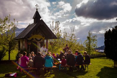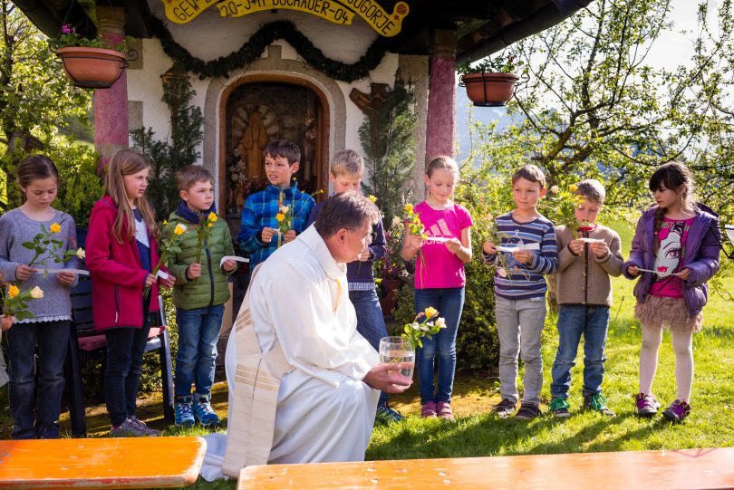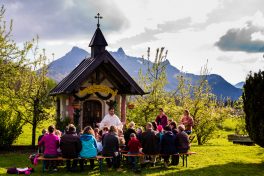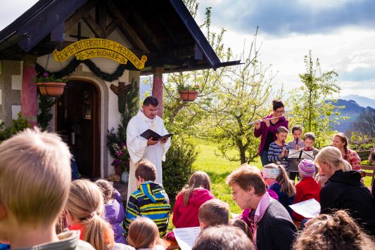 Eine eigene Kinder-Maiandacht organisierte der Familiengottesdienstkreis der Pfarrei „Maria Himmelfahrt“ Törwang-Samerberg an der Marienkapelle der Familie Buchauer in Schöffau. Das Thema der Maiandacht mit Diakon Günter Schmitzberger lautete „Maria, nimm mich bei der Hand“. Als Dank an die Muttergottes haben die Kinder Blumen zur Marienkapelle gebracht, als Mitglieder des Familiengottesdienstkreises haben Melanie Trinkl, Aloisia Geißler und Susanne Stadler die Maiandacht zur Ehre Gottes und zur Freude der Kinder mitgestaltet.