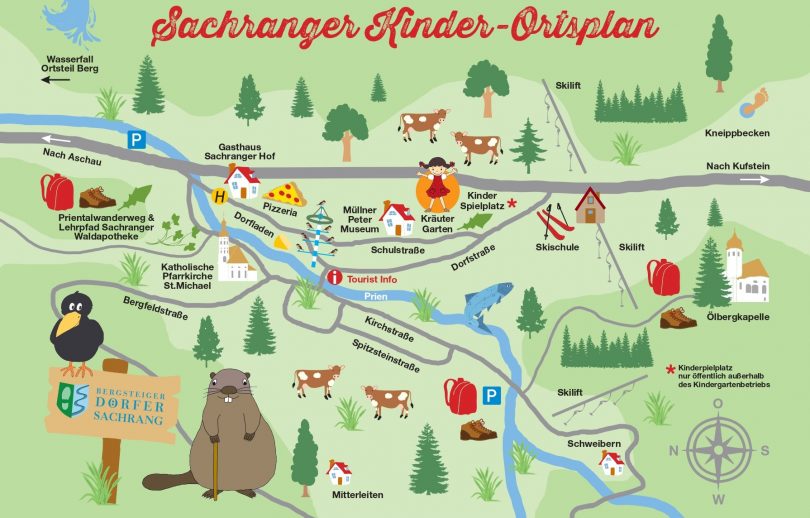 Um das Kinderangebot weiter zu optimieren, hat die Tourist Info Aschau nun noch einen speziellen Kinderortsplan für Aschau i.Chiemgau und das Bergsteigerdorf Sachrang herausgegeben. Einfach und zugleich genial gehalten. Auch in seiner Farb- und Symbolwelt ist der Kinderortsplan auf seine junge Zielgruppe zugeschnitten. Spielerisch kann so das Priental erkundet werden und ist zugleich die hilfreiche Ergänzung für den neuen Aschau- uns Sachranger Schnitzeljagd-Führer. Kostenlos ab sofort in den Tourist Infos von Aschau i.Chiemgau und Sachrang, Tel.: 08052-90490 bzw. unter info@aschau.de erhältlich.