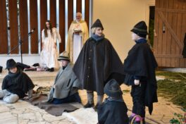 In diesem Jahr konnte die Kindermette auf dem Dorfplatz stattfinden, wo sich die Kinder –meist mit Oma und Opa- versammelten. Mit dem Satz „Ein Sohn ist uns vor über 2000 Jahre geboren – Jesus ist ein Geschenk für uns alle“ eröffnete Diakon Erik Oberhorner die Mette. Mitglieder der Schlechinger Feuerwehr brachten das Friedenslicht und feierlich verlas der Diakon aus dem Weihnachtsevangelium die Weihnachtsgeschichte aus dem Neuen Testament zur Geburt Jesu von Nazaret.
