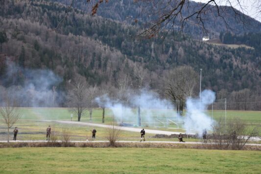 Zum Kontrast der ruhigen und feierlichen Stimmung zeigten die Schlechinger Böllerschützen traditionell ihr Können mit dem „Christkindl o’schießen“.