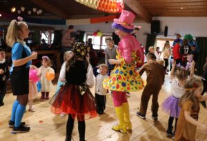 Manche blieben zuerst noch abwartend an der Hand der Mama, aber schon bald stürzten sie sich ins Getümmel und machten mit. Clown Elli und die Helfer und Helferinnen des SC Frasdorf hielten die Kinder mit Tanz und allerlei wilden Spielen auf der Bühne in Bewegung. Heiß tobte daneben der Kampf mit den Lichtschwertern, den Degen, Säbeln und Messern auf der Bühne und im Saale, die Gewehre und Revolver der Cowboys und Indianer krachten und die Vorderlader der Piraten sprachen auch noch ein gewichtiges Wort mit, dazu platzten die Luftballons und die Stereoanlage des DJ dröhnte: Selten ist es so laut in der Frasdorfer Lamstoahalle, wie beim alljährlichen Kinderfasching des SC Frasdorf.