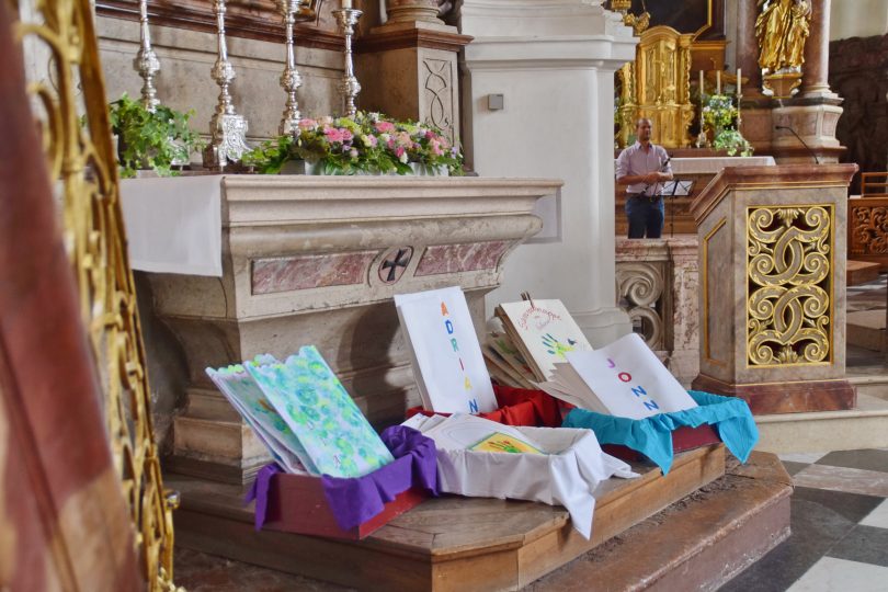 In diesen Sommertagen hieß es für die Vorschüler des katholischen Kindergartens „St. Irmengard“ miteinander Abschied zu nehmen. Aufgrund der derzeitigen Situation fanden sich heuer nur die künftigen SchülerInnen und deren Familien zum Gottesdienst in der Pfarrkirche Mariä Himmelfahrt ein, so dass auch hier alle Corona-Auflagen eingehalten werden konnten. Gemeindereferentin Cornelia Gaiser strich gleich zu Anfang hervor, dass alle zusammen ein ganz besonderes Kindergarten-Jahr hinter sich haben: Einerseits gilt es in der Vorschule den Übertritt zur Schule vorzubereiten, andererseits gibt es – wie viele Kinder es nennen – dieses „blöde Corona“. Daher konnte zwar nicht alles so gemacht werden, wie es vorgesehen war, aber einige Dinge wurden dennoch ermöglicht. So auch dieser feierliche Abschluss.