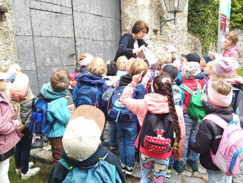 Sie besuchten die Burg zu Hohenaschau. Nach einem anstrengenden Aufstieg erfuhren sie sehr kindgerecht, viel Wissenswertes über die Vergangenheit und Gegenwart des alten Gemäuers.