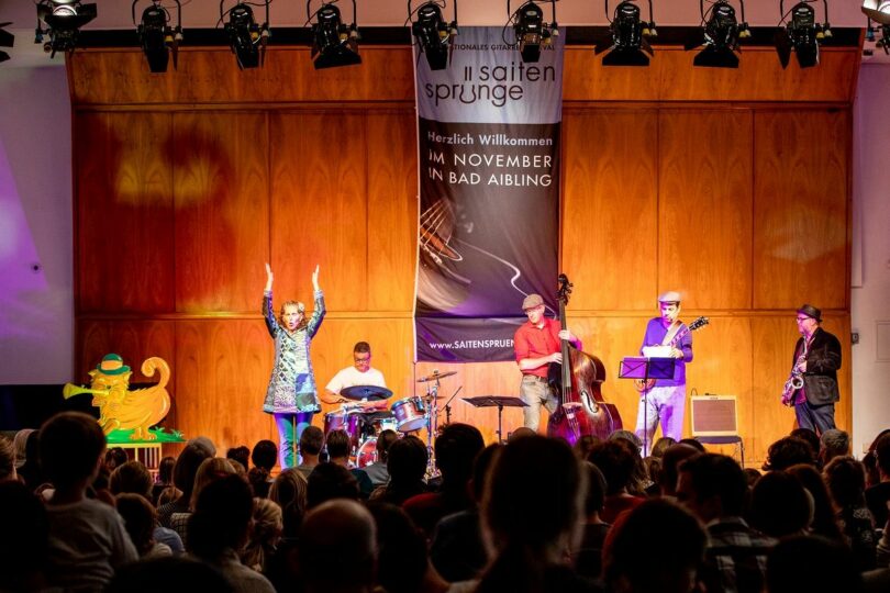 Zwischen all den internationalen Stars und spannenden Newcomern des Internationalen Gitarrenfestivals „Saitensprünge“ darf ein Termin nicht fehlen: das Kinderkonzert. Am Sonntag, 5. November, um 15:00 Uhr öffnen die Türen des Bad Aiblinger Kurhauses für den Nachwuchs. Auf dem Programm steht in diesem Jahr das bekannte Märchen „Kalif Storch“ von Wilhelm Hauff, das von den vier Künstlerinnen und Künstlern neu interpretiert und speziell für Kinder interaktiv arrangiert wurde. Moderne Musik, die speziell für Kinder geschrieben wurde, lädt ein mitzurappen und mitzusingen. Die beiden Geschichtenerzählerinnen Barbara Greiner-Burkert und Karin Wedra führen lebhaft durch die fantastische Märchenwelt, in der alles möglich scheint. Musikalisch unterstützt werden die beiden von Christoph Regl an der Gitarre und Anna Rehker am Cello. In dem Märchen verkauft ein böser Zauberer dem Kalifen und seinem treuen Diener ein magisches Pulver, mit dem sie sich in jedes beliebige Tier verwandeln können. Doch eines müssen sie beachten: man darf während der Verwandlung nicht lachen, sonst bleibt man ein Tier. Klar, dass den beiden das Missgeschick passiert. Nun müssen sie alles daran setzten, sich von Störchen wieder in Menschen zu verwandeln.