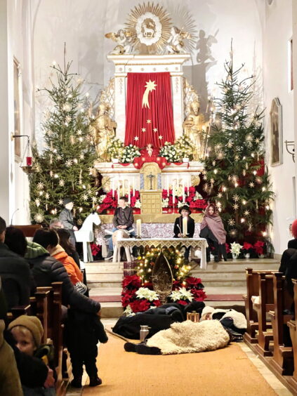 Die Trachtenkinder vom Trachtenverein Wildenwart haben heuer das Kinderkrippenspiel am Heiligabend in der Christkönigkirche mitgestaltet.