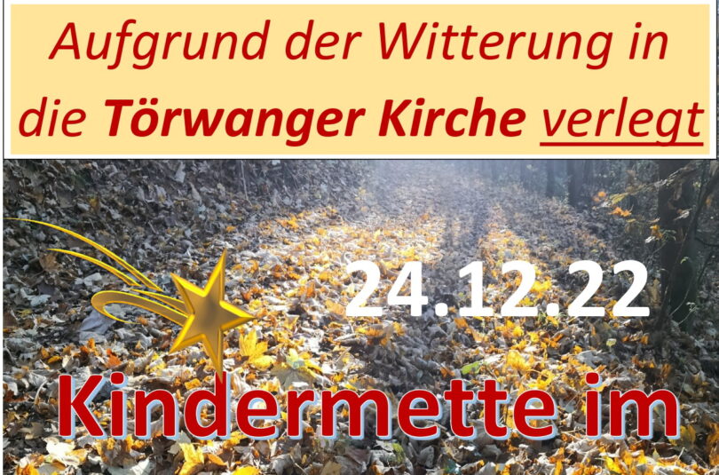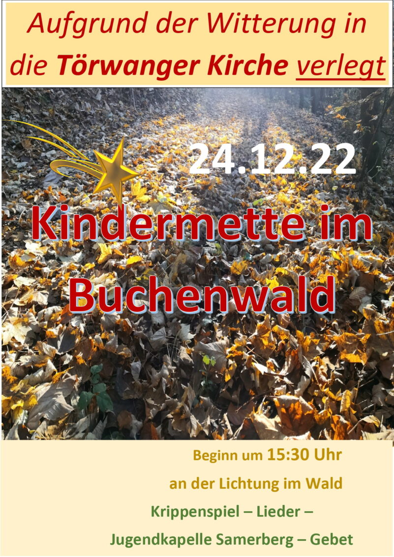 Nicht wie geplant im Buchenwald, sondern aufgrund der Wetterprognosen in der Kirche “Mariä Himmelfahrt” in Törwang findet die Samerberger Kindermette am Samstag, 24. Dezember (Heilig Abend) statt.