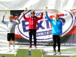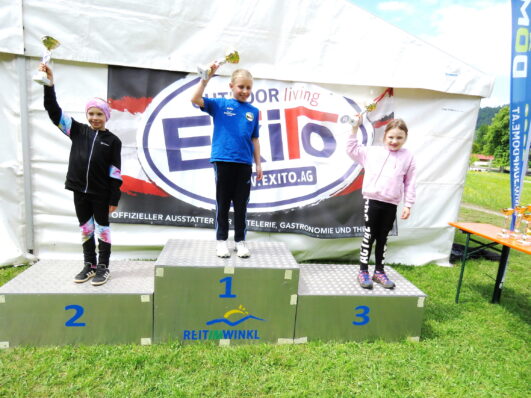 In der Klasse Kinder I gewann bei den Mädchen Magdalena Senftleben vom WSV Oberaudorf (Mitte) vor Ella Postler vom WSV Reit im Winkl (links) und Nina Scheiber vom Nordic Team Absam.