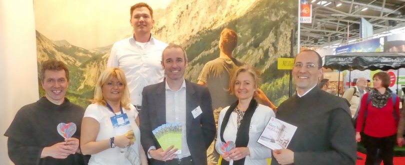 Bereits zum dritten Male präsentieren sich die Erzbistümer Salzburg und München-Freising gemeinsam auf der Münchner Freizeit- und Reisemesse mit einem Informationsstand. Standleiter Robert Hintereder vom Ressort Seelsorge und kirchliches Leben vom Erzbischöflichen Ordinariat München als Koordinator der fünftägigen Präsentation war bereits am Eröffnungstag hoch zufrieden. „Gäste kennen keine Bistumsgrenzen und sie kommen zu uns, weil gerade in der schnell-lebigen Zeit Angebote mit Sinn und Stille gesucht und gebucht werden“, so Robert Hintereder, der den Gästen zusammen mit weltlichen Mitarbeitern und mit Geistlichen gerne Rat und Auskunft gibt. Insgesamt wechseln sich rund 25 Leute am Standdienst ab. „Alle werben wir für die Kirche, wir sind offen für alle Gesprächs-Themen und freuen uns, dass aufgrund der bisherigen Messebeteiligungen schon eine gewissen Bekanntheit über uns bei den Münchner Messebesuchern festzustellen ist. Wallfahrten, Pilgern oder Aufenthalte ohne Remmidemmi werden gerne nachgefragt und unsere gemeinsamen Karten und Werbemittel werden gerne mitgenommen“, so Robert Hintereder, der am Eröffnungstag mit Bruder Martin Hieronymi,  vom Schweizer Kloster Disentis, mit Bruder Christian vom Kloster Maria Eck, mit Mag. Hermann Signitzer vom Seelsorgeamt der Erzdiözese Salzburg, mit der Pilgerführerin Angelika Wimmer aus Mattsee im Salzburger Land und mit Judith Kassai vom Erzbischöflichen Ordinariat München den Stand betreute und die Gäste über kirchliche Angebote in der Freizeit informierte.